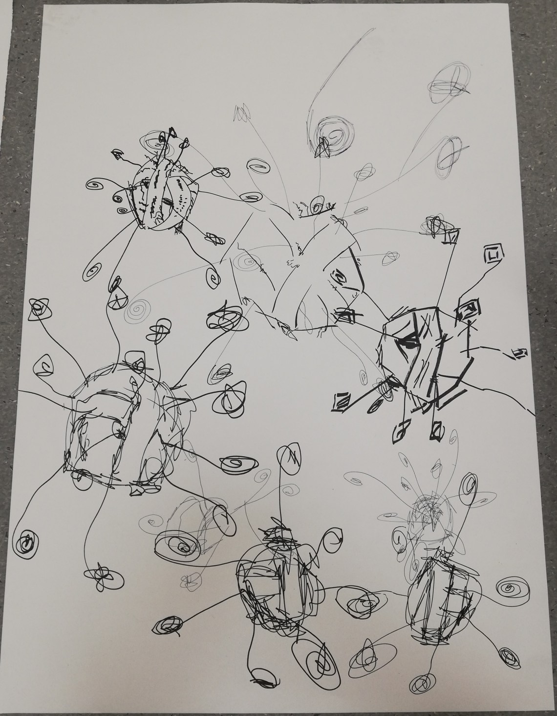 Part 1: drawing without seeing (object > touch > description > drawing)