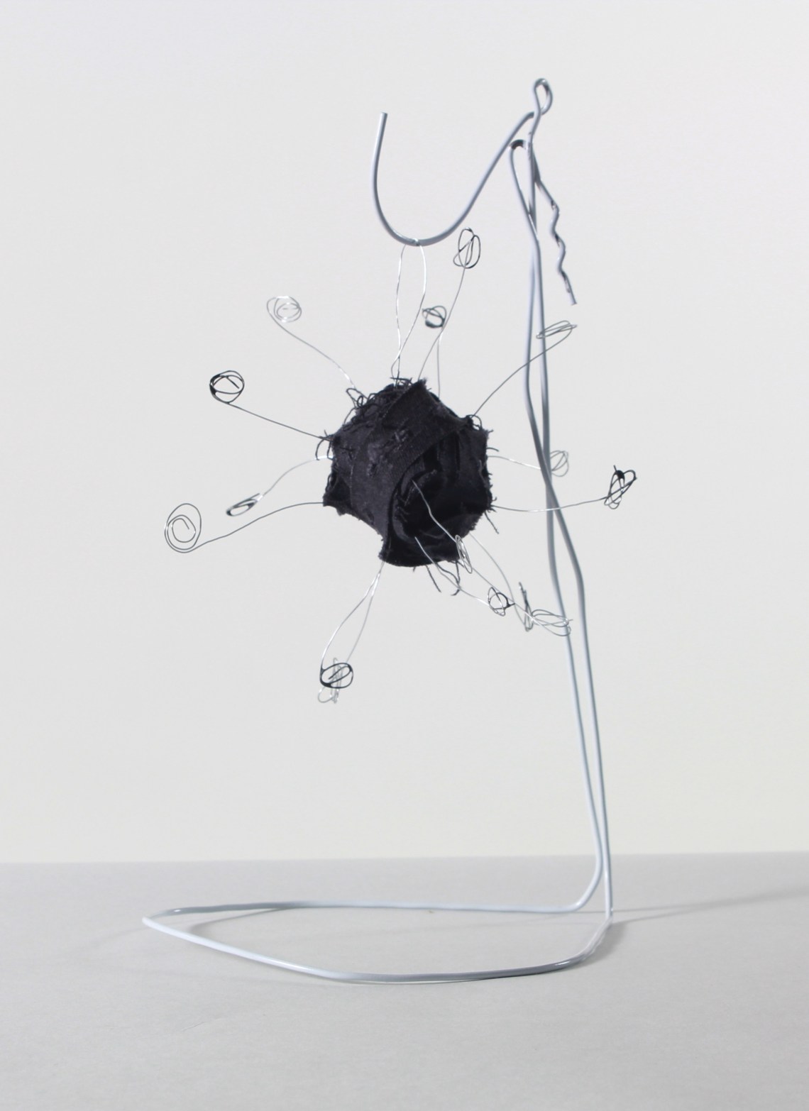 Looping the ends of the wire was an attractive translation of the cardboard loops on the previous sculpture, and when they didn’t stand out enough I daubed some with black nail polish for a colour and texture highlight.