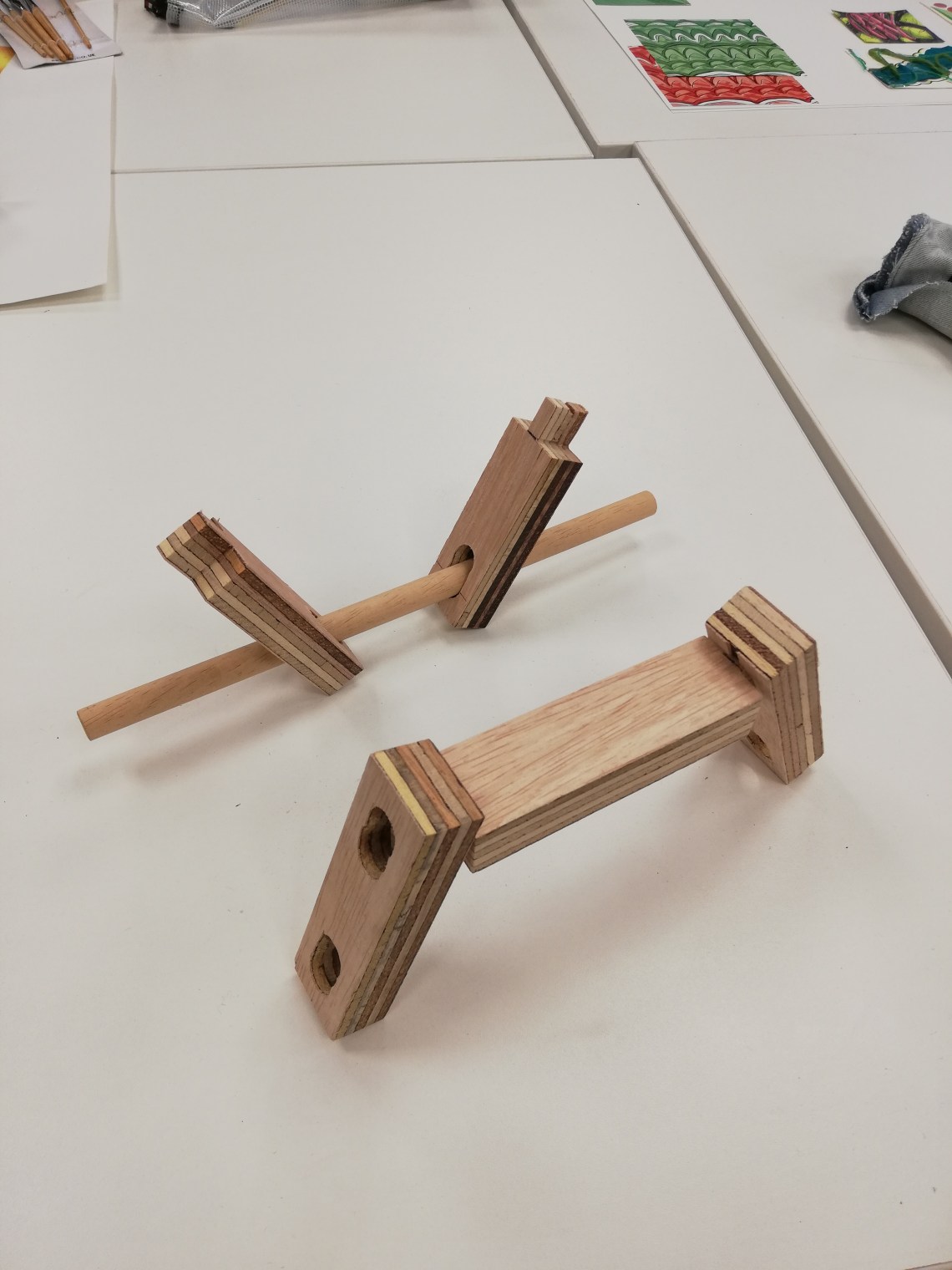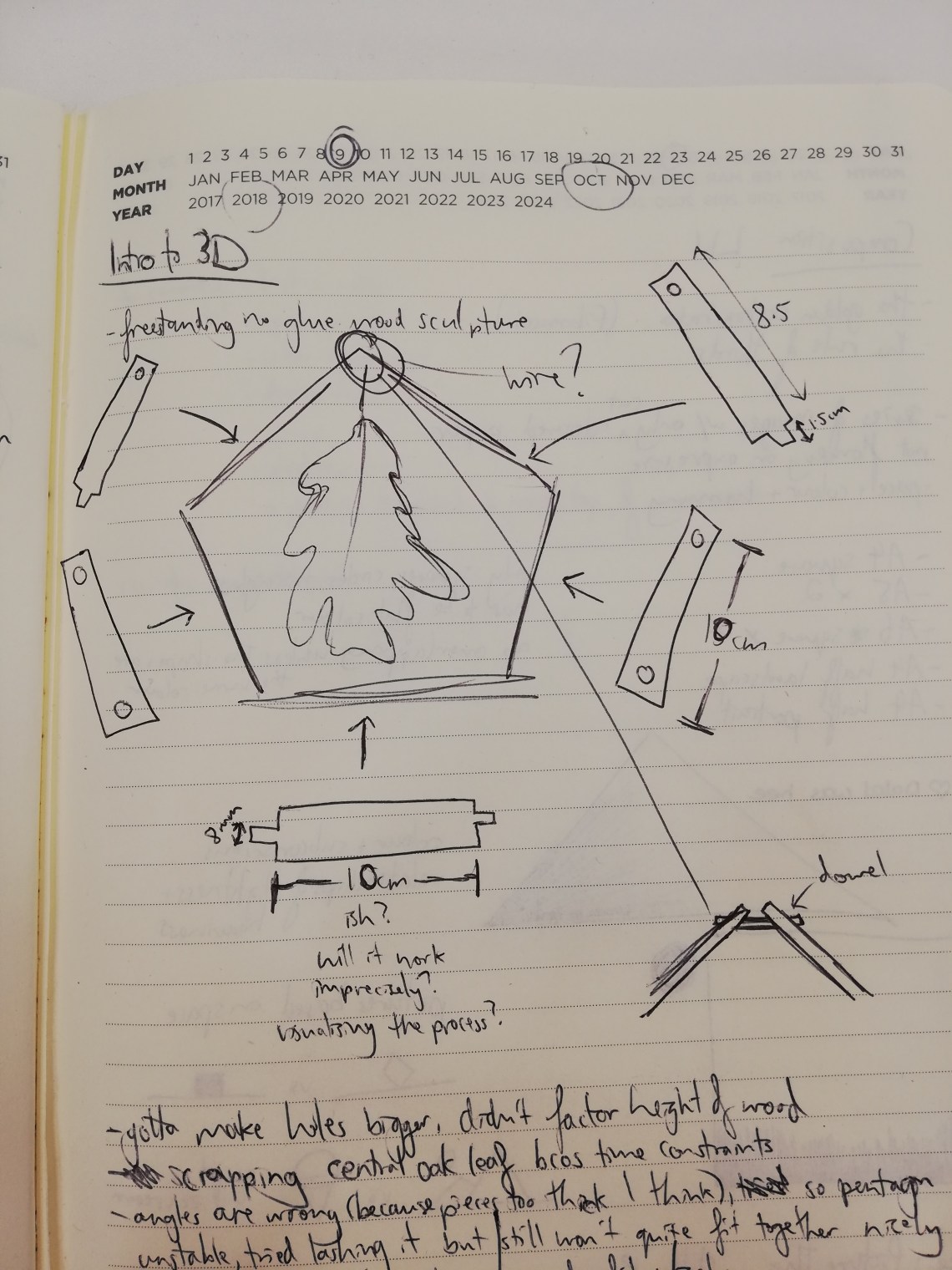 The leaf plan got scrapped pretty quickly just because of time constraints, and I also soon realised that I needed to make the holes longer because the wood pieces were thicker than I originally factored in. I solved this by just drilling a second hole next to each initial one.