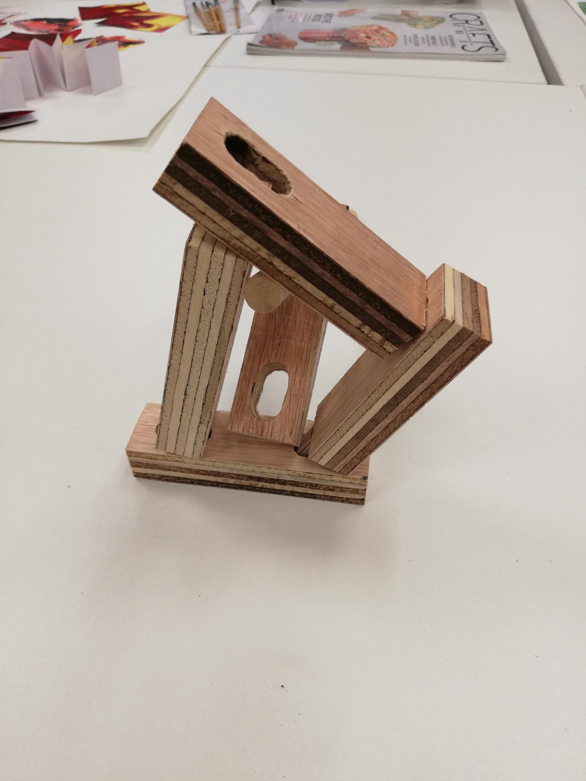 Brief from the Intro to 3D workshop: create a freestanding wood sculpture with no glue, preferably exploring joining methods.