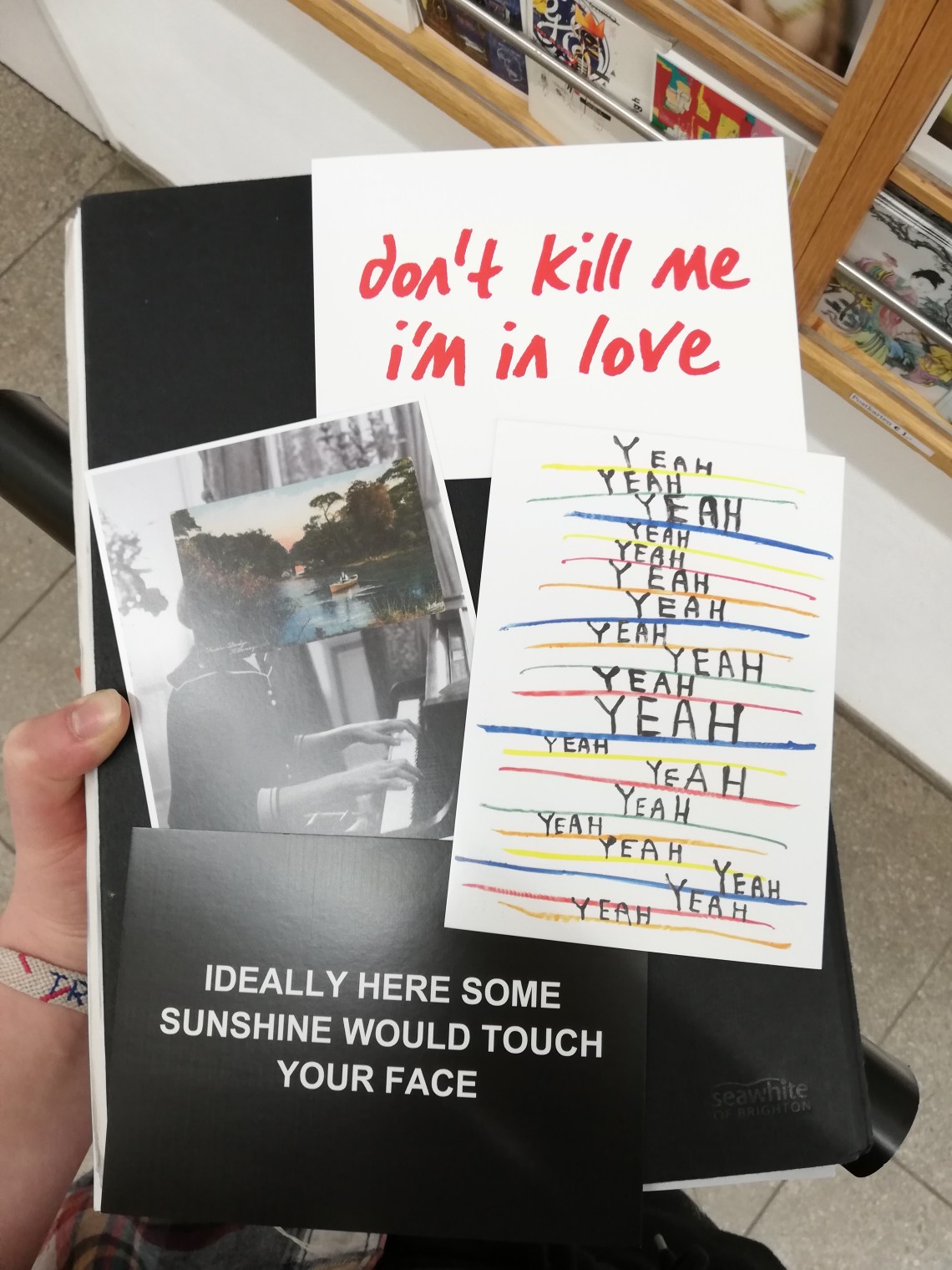 I don’t know why I love these. They just really grab me and are inexplicably emotive. Somehow the combination of words and colour/format has a very strong effect on me. I just spotted them when I was ambling through the shop, and ended up spending a few minutes with them on the spot and doing my own versions later. It felt important to put them through the prism of myself.