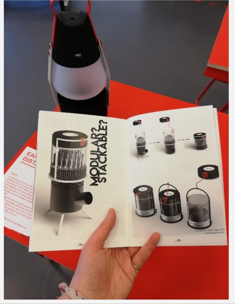 At first I didn’t really notice this artwork, I was just browsing, but once I read the pamphlet and paid attention it really intrigued me. The piece itself is a device which converts temperature difference (created by eg burning a tea light) into electricity, and makes the electricity available via a USB port and a lamp. It’s sleek, and the texture of the lamp and the other parts are also appealing in terms of tactility, but what really interested me is the pamphlet which described and illustrated the process of research, prototyping, and final production. It’s both beautiful+informative to read, and conveys a huge amount of work (I’ve emailed Tobias to ask to buy a copy, to have for inspiration).