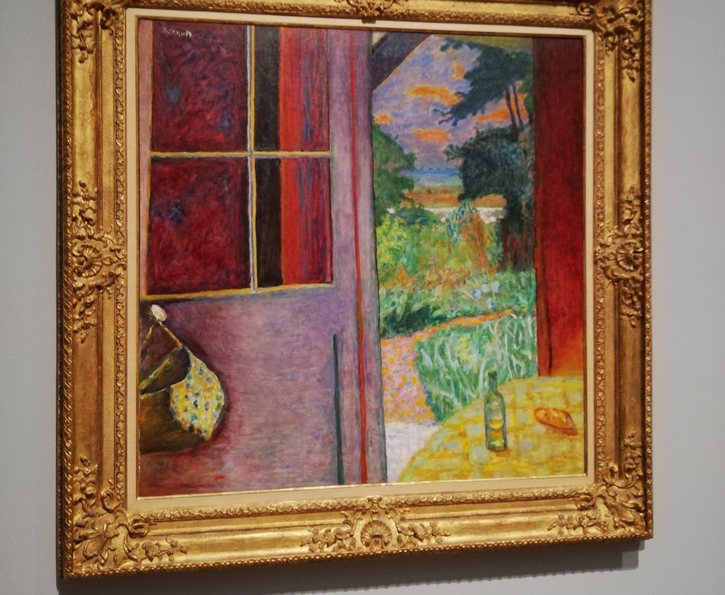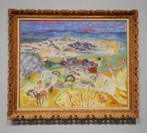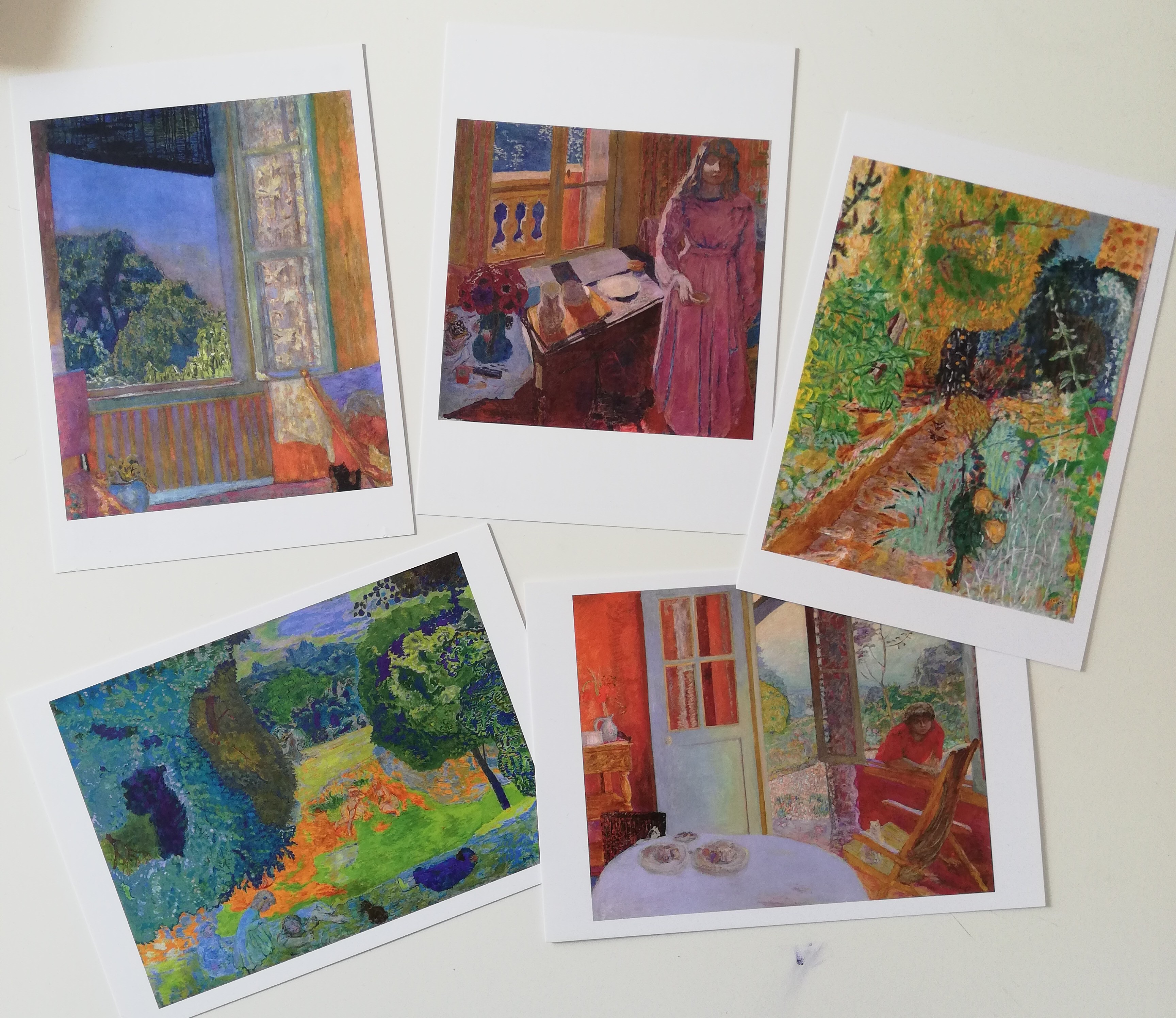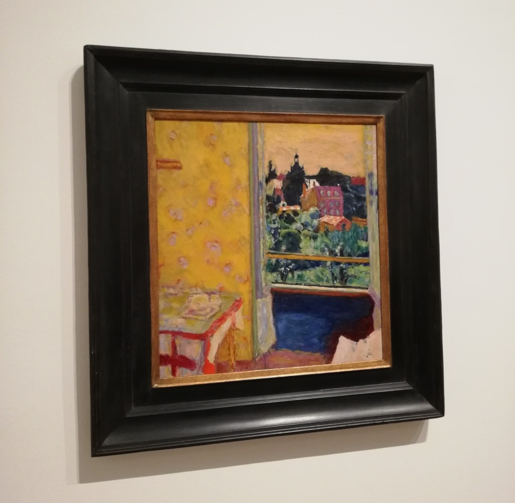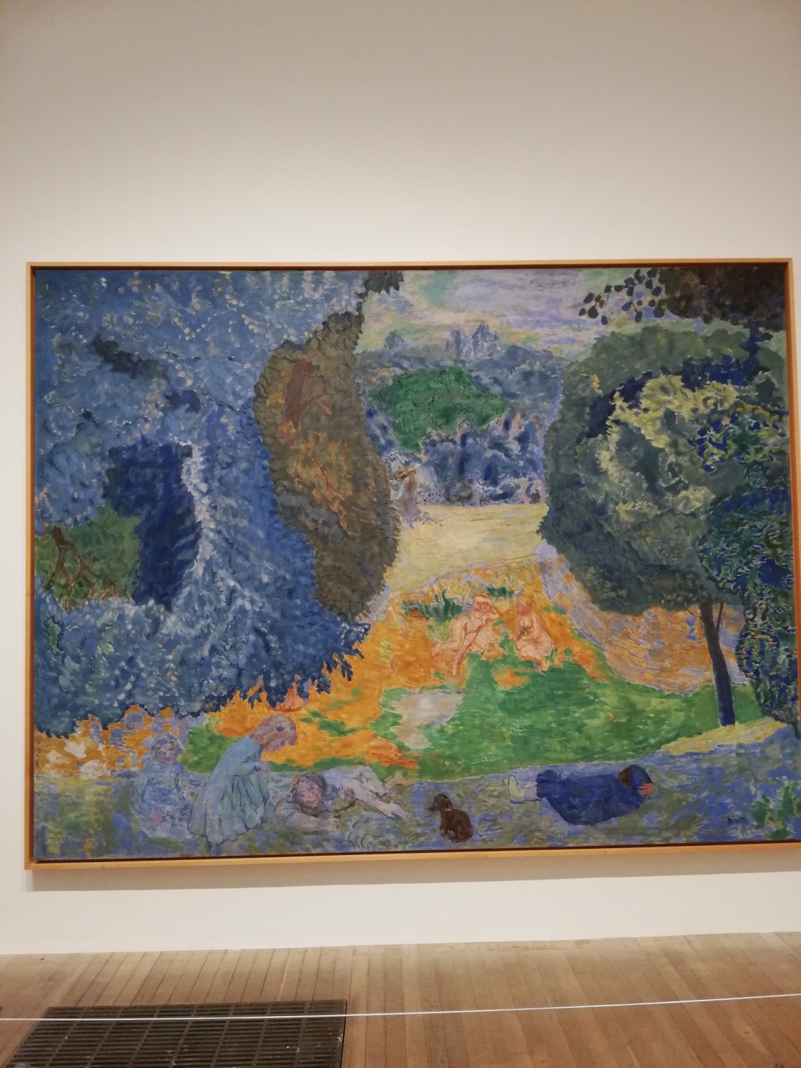 Working method: Bonnard would work on multiple canvases at a time, on canvases just pinned to the wall (not stretched on a frame), so that he could roll them up to transport them and thus work on them for many months (or years) at a time in a variety of environments. ‘This meant that the canvases developed as independent and self-contained entities. Whether addressing the domestic interior, still-life, or landscape, Bonnard needed to summon the experience up in memory, making him acutely aware of the passage of time.’ [quoted from the exhibition booklet] It also means the paintings contain layers of influence from a variety of multiple contemporary environments to the action of painting. Painted through the prism of memory and of multiple contexts.