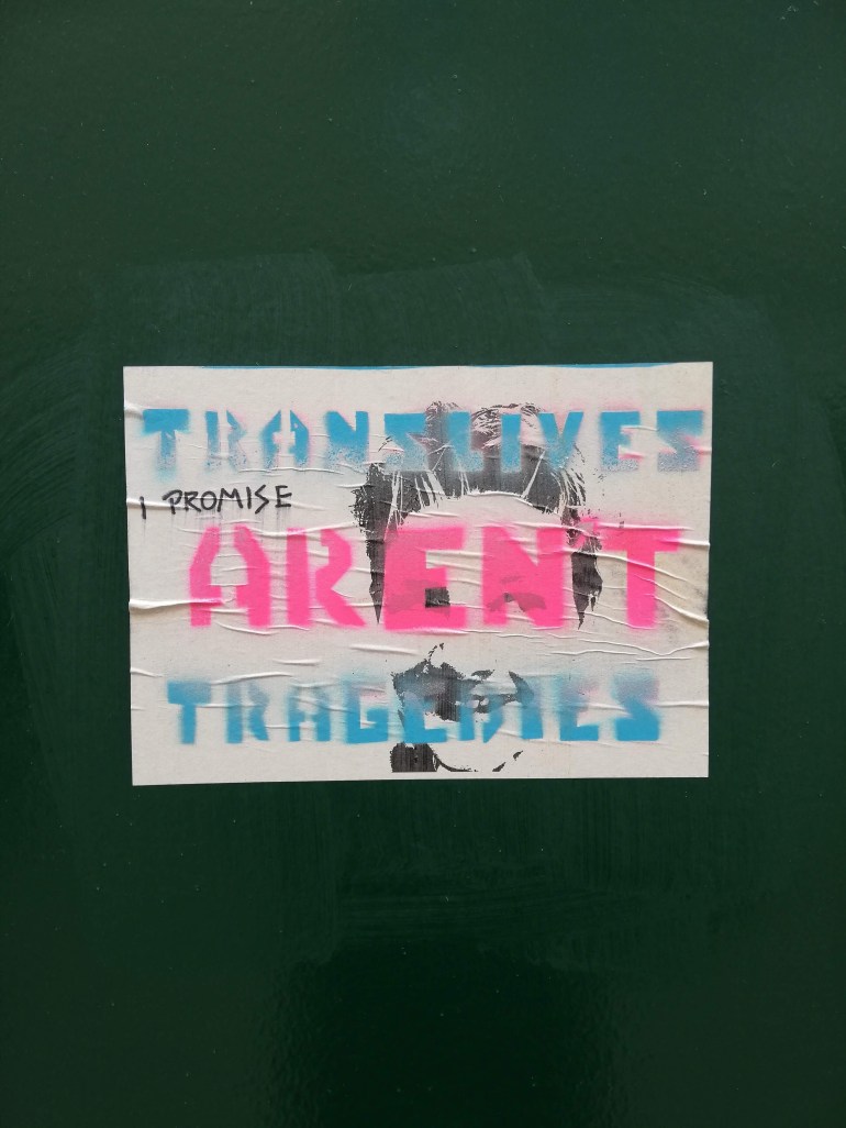 Also on this round of posters, I tested whether or not I could use wheatpaste to put up fabric work. I can!! It used a bit more paste because I wanted to be sure the fabric would be saturated, and it probably would be easier for someone to take down because the fabric would rip less easily than paper, but it did work. I’ve had to table developing the portraits idea for now*, in favor of getting the zine ready for the final show, but this means in future I can explore the tactility potential of using fabric in street art.