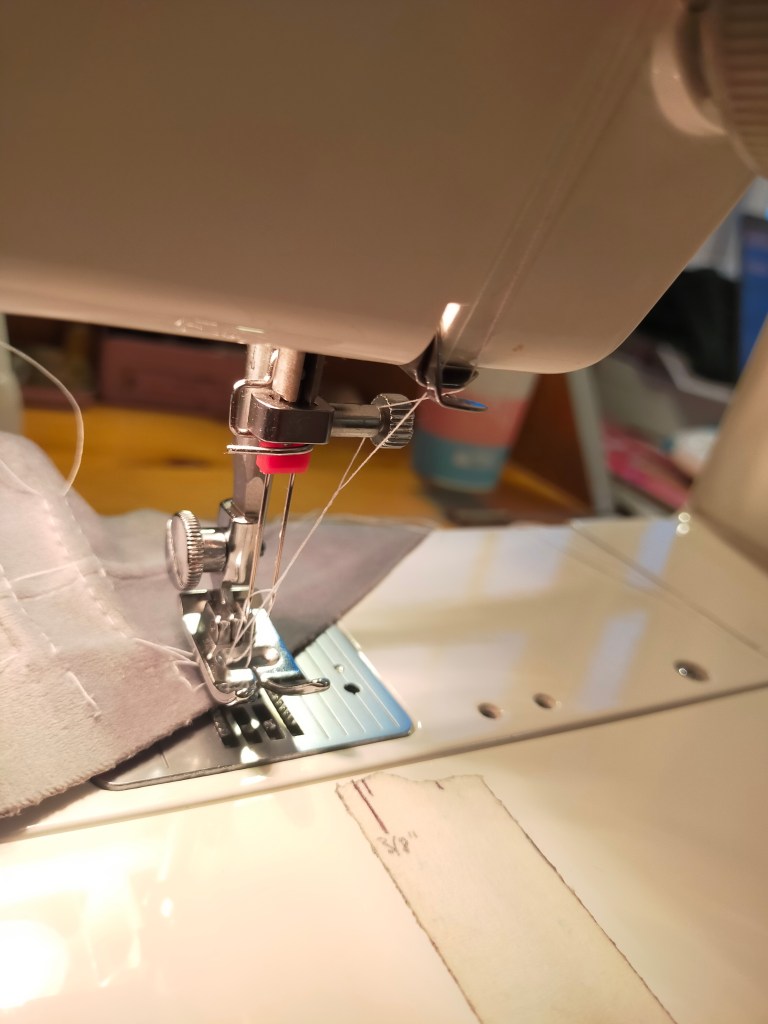 As I write this, I’m having a great deal of issues figuring out the twin needle, as the left hand needle is skipping every or nearly every stitch, and then the threads get looped up and tangled