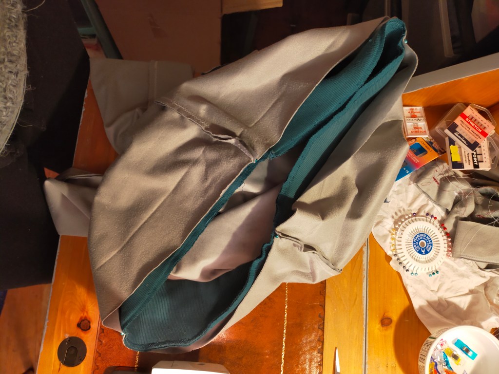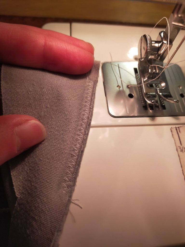 I sized up to ballpoint 90 needle for the single needle zigzag to see if that helps, and it does seem to go smoothly. No hints of an occasional skipped zigzag I was getting when embroidering. For archive’s sake, I’m now at my usual 3.6ish tension, 4 width, 2 length. Here we go, construction time (finally). Let’s see how many mistakes I can make!