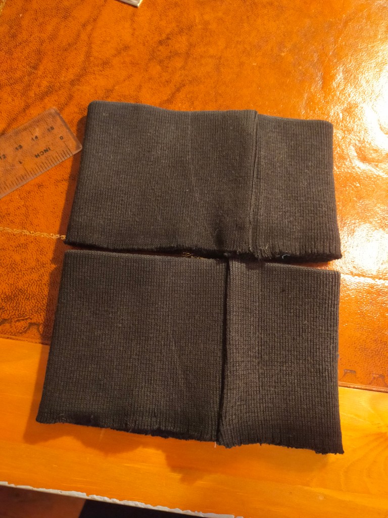 It’s cold as I type this so I’m thinking maybe I should have narrowed them a bit more (they were 5.5″ across as opposed to the 5″ across ones I deconstructed on the original sweatshirt), but I’ll try to wait and see how it wears day-to-day before I go hacking back in.