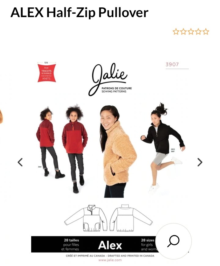 I also wonder if this kind of zip-neck fleece pattern (below – very on the Lucy&Yak trend) might work for a light non-stretch quilted fabric. Would need a relatively soft/flexible batting. I also wouldn’t be able to roll my sleeves up the way I often do (and would it fit under a coat? maybe it would just be a house-sweater or a spring-sweater – although I remember I live in England and it rains). I wonder if I could put sleeve plackets and cuffs in a quilted sleeve.