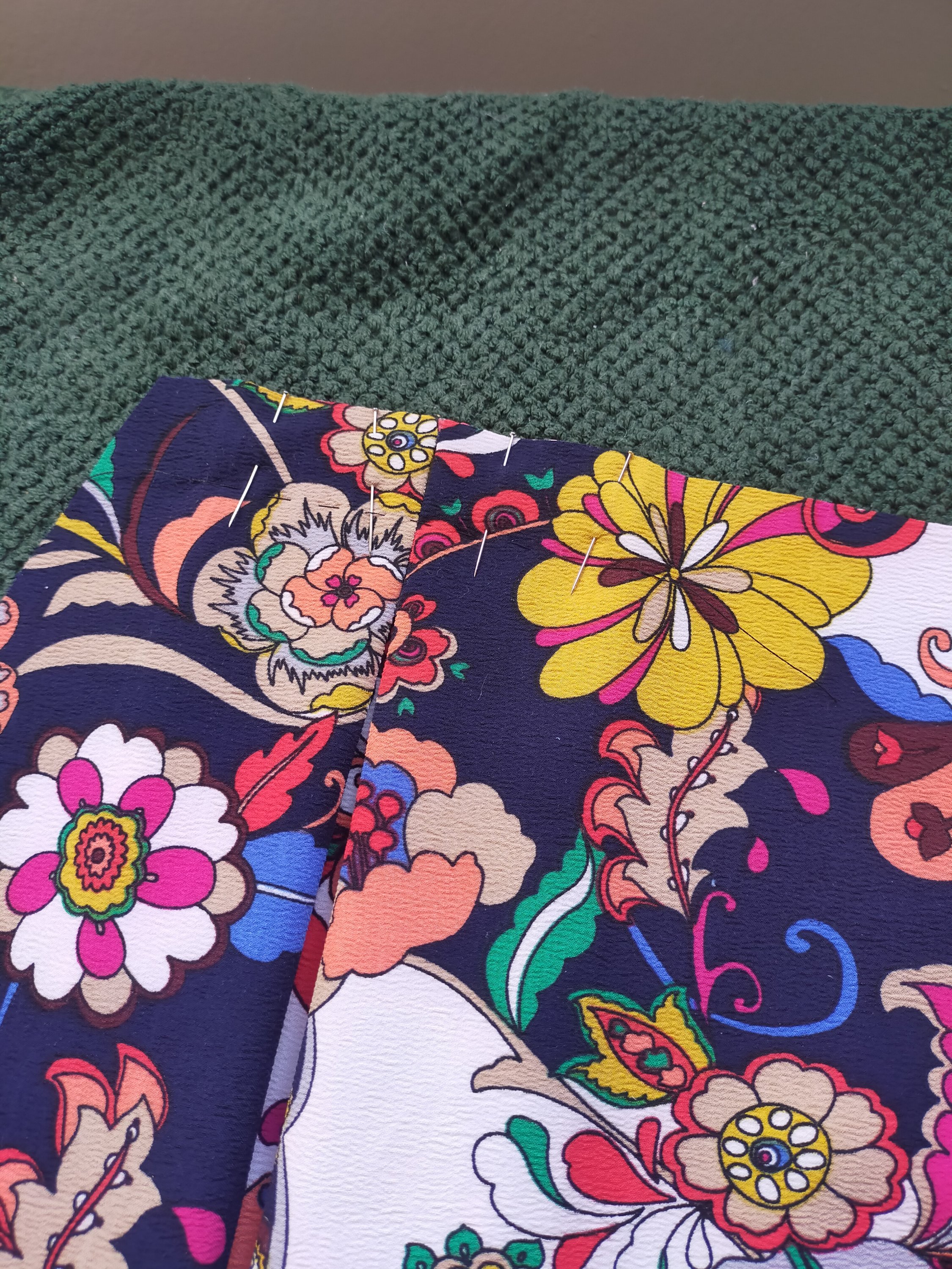 I was worried this kinda-beefy crepe wouldn’t press well and would lose its crinkle to the iron, but it actually behaved itself very well. Obviously didn’t press like a cotton but it took a crease and nothing I did seemed to affect the texture. Win! I tacked the pleats closed at the middle and bottom to help keep them closed and neat while constructing the pockets, because they were annoying during the muslin construction. I also ignored the instructions and hand basted them an inch from the top *before* sewing the stay-stitching, so that I could hand baste while the pins were still in, and it made the stay stitching much easier, as the bottom of the pleat wasn’t swinging around causing problems.