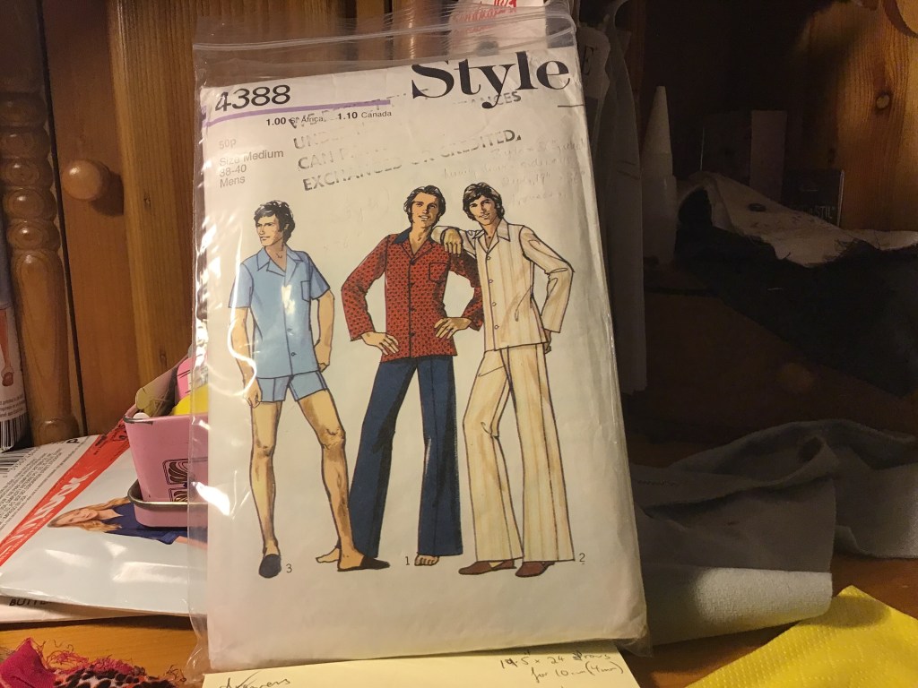 I’m also pondering using this now-hybrid pattern with the sleeves and body length cut off to make a boxy summer shirt – think ‘grandpa grilling’ in maybe a bright plaid or check cotton. Maybe I should try a proper menswear pattern instead, and enjoy not having to battle the draft, possibly Colette’s Negroni? I do have a couple proper men’s shirt patterns (a western style, and a ‘normal one’ – that’s Butterick 3364) but they’re vintage off eBay so the collars are wide and I think I’d have the alter the fitted bodies to get the boxy fit I’m thinking of. I do have a boxy camp shirt pattern (actually from a 70s pyjamas pattern), but I suspect the armscyes would be too different to easily nick the torso shape off that.