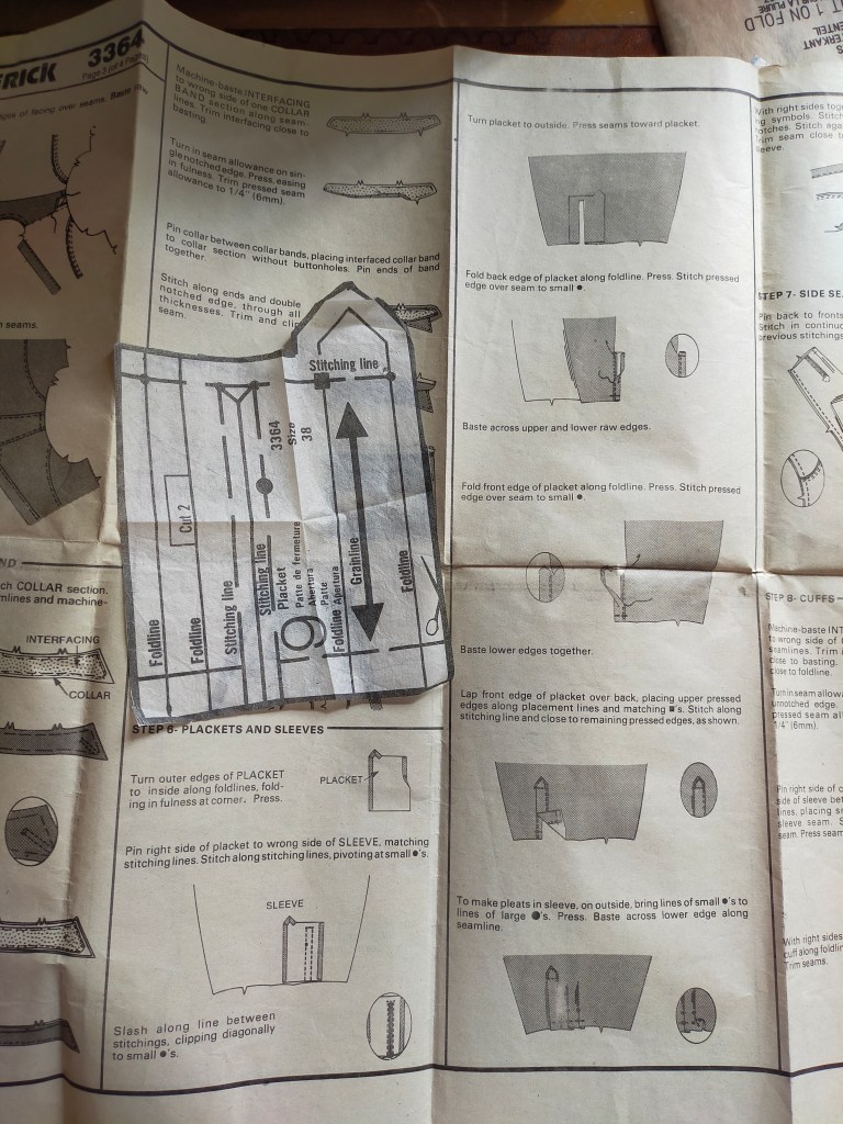 - Skipped the continuous lap placket on the sleeve and subbed in the tower sleeve placket from Butterick 3364 (men’s shirt pattern)