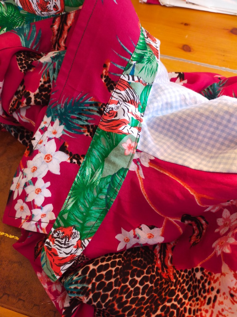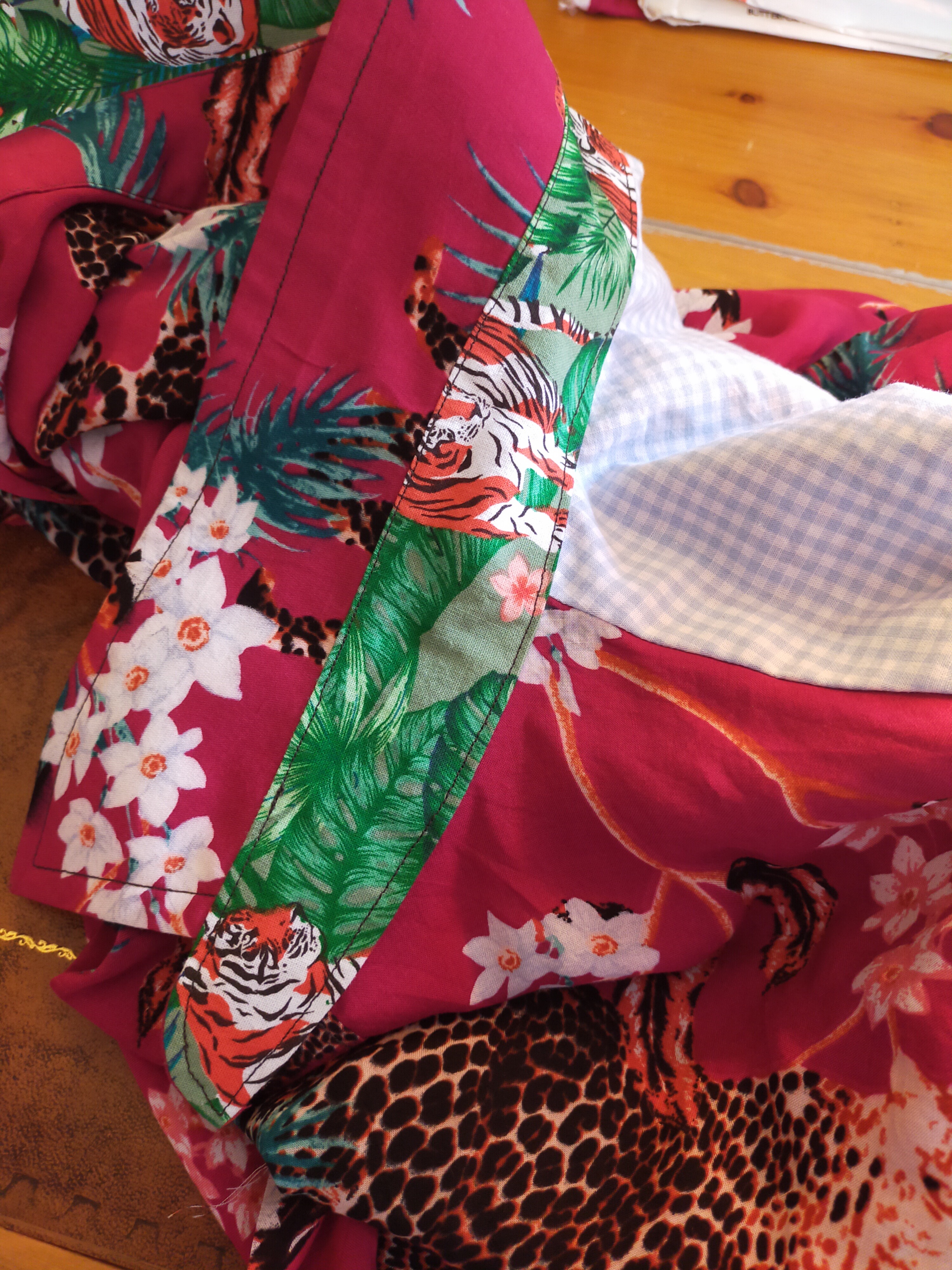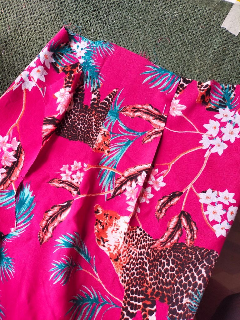 The extra width on the fold at CB made the pleat slightly weirdly wide and I probably should adjust that if there’s a next time. That said, I did very basic pattern arrangement and no matching, and I was very pleased one of the leopards showed his face on the pleat.